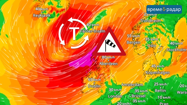Мощна система от ниско налягане с ураганни ветрове се приближава към Британските острови. Тя ще донесе силни пориви на вятъра, особено в Северна Шотландия, в четвъртък вечерта и петък сутринта. Очакват се ураганни ветрове от около и над 120 км/ч в Хебридите и по шотландското крайбрежие.