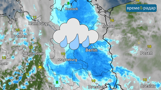 Както показва метеорологичният радар, в неделя в околностите на Берлин валя силен и продължителен дъжд.