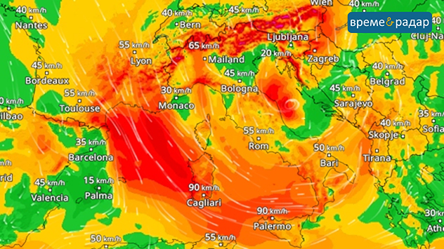 Средиземно море се очаква да стане бурно. Бурята ДЕБОРА носи пориви на вятъра над 100 километра в час, особено по френското крайбрежие, през Менорка и чак до Сардиния. Там вълните достигат височина до 6 метра.