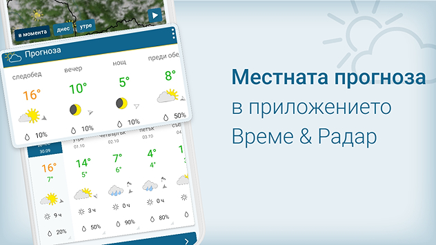 С Метеокартата в приложението Време & Радар можете да следите какво се случва в небето по всяко време и навсякъде по света.