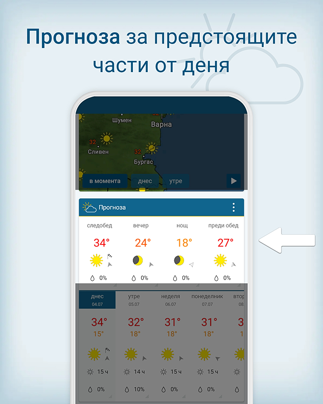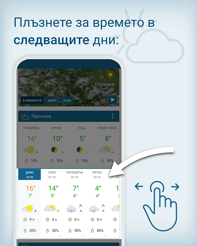 Нашата фотогалерия ви показва как да видите днешната прогноза и изгледите за следващите дни:
